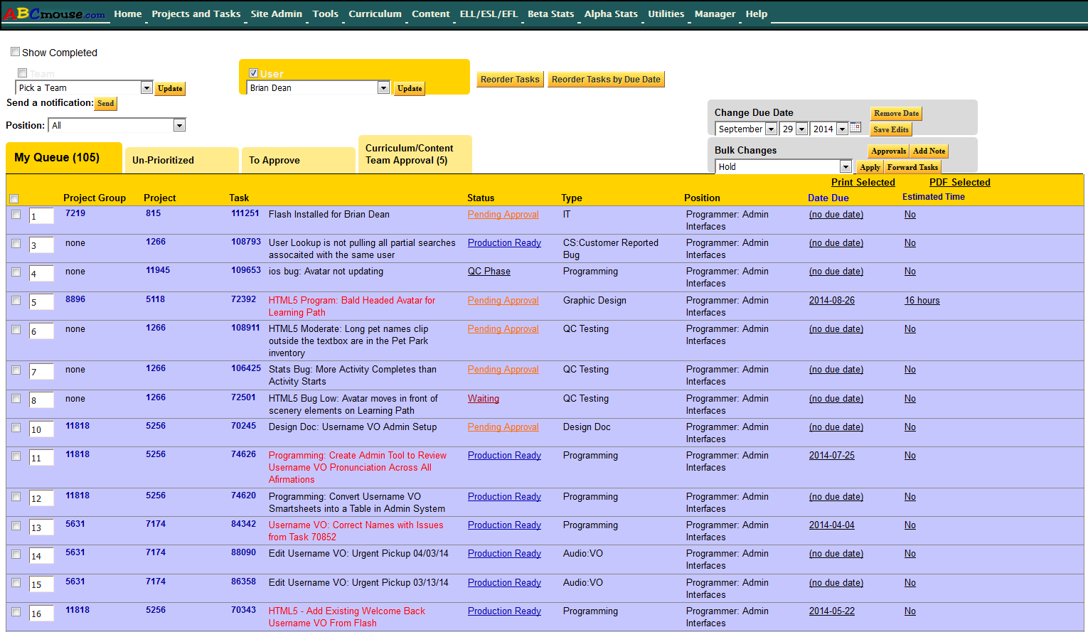 I built a task a project system for Age of learning to handle all of the tasks and projects that were underway.